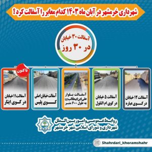 ۳۰ خیابان در ۳۰ روز توسط شهرداری خرمشهر آسفالت شد