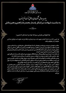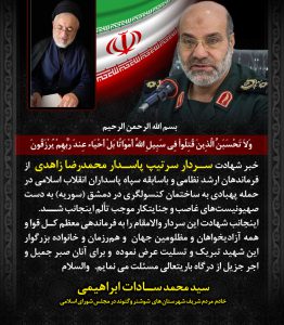 پیام تسلیت سید محمد سادات ابراهیمی منتخب مردم شهرستان های شوشتر و گتوند در مجلس شورای اسلامی در پی شهادت سردار سرتیپ پاسدار محمدرضا زاهدی