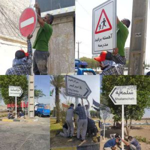 نصب تابلوهای ترافیکی و هشدار دهنده در معابر سطح شهر توسط شهرداری خرمشهر