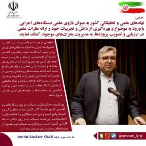 نهادهای علمی و تحقیقاتی کشور به عنوان بازوی علمی دستگاههای اجرایی با ورود به موضوع و بهرهگیری از دانش و تجربیات خود و ارائه نظرات علمی در ارزیابی و تصویب پروژهها، به مدیریت بحرانهای موجود، کمک نمایند ماهرخ مرادی ۱۴۰۱-۱۱-۲۰ ادامه خبر