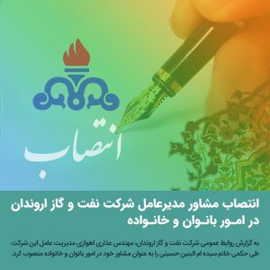 انتصاب مشاور مدیرعامل شرکت نفت و گاز اروندان در امور بانوان و خانواد خبرنگار: سپیده حاتمی ۱۴۰۱-۰۵-۲۶ ادامه خبر