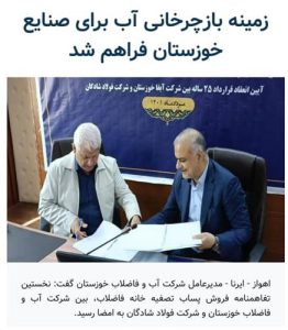 نخستین تفاهم نامه فروش پساب تصفیه خانه فاضلاب، فی مابین شرکت آب و فاضلاب خوزستان و شرکت صنعت فولاد شادگان به امضا رسید خبرنگار: سپیده حاتمی ۱۴۰۱-۰۵-۲۶ ادامه خبر