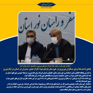 فضای با نشاط برای مسافران نوروزی در خوزستان فراهم شود/الزام حضور مدیران در استان در ایام نوروز خبرنگار: سپیده حاتمی ۱۴۰۰-۱۲-۲۲ ادامه خبر