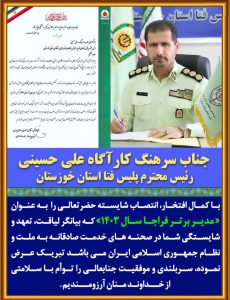 سرهنگ کارآگاه علی حسینی، رئیس پلیس فتا استان خوزستان، بهعنوان مدیر برتر فراجا سال ۱۴۰۳ در کشور معرفی شد