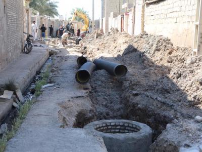 اجرای عملیات شبکه و انشعابات فاضلاب خانگی کوی سیاحی اهواز
