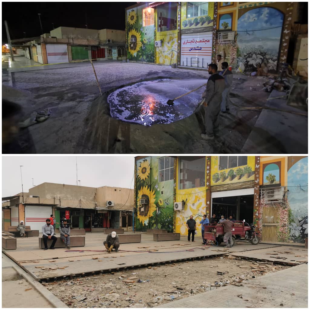 عملیات بهسازی سنگفرش محوطه پاساژ قدس شهر چمران