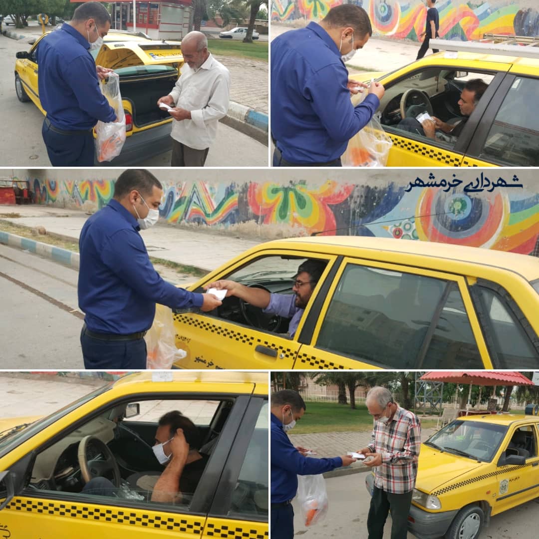 شهرداری خرمشهر با هدف حفظ سلامت رانندگان تاکسی و شهروندانی که از این وسیله نقلیه استفاده می کنند و همچنین در راستای پیشگیری از شیوع ویروس کرونا اقدام به توزیع ماسک و دستکش رایگان بین رانندگان تاکسی نمود و از آنان خواست تا در جهت قطع زنجیره ویروس کرونا بصورت مرتب ضمن رعایت کلیه نکات بهداشتی ، از ماسک و دستکش استفاده نمایند تا سلامت خود و سایر شهروندان را حفظ نمایند .
