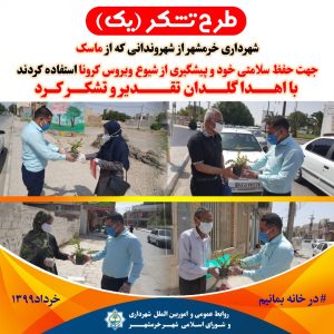 تقدیر و تشکر شهردار خرمشهر از شهروندانی که از ماسک جهت پیشگیری شیوع ویروس کرونا استفاده کردند