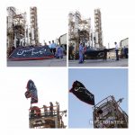 اهتزاز پرچم ۱۲ متری محرم بر فراز مرتفع ترین برج پالایشگاه روغن سازی آبادان