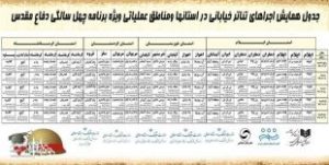 نمایش خیابانی «آن روزها» به نویسندگی و کارگردانی علی بنائیان و نمایش خیابانی «یاد یاران» به نویسندگی و کارگردانی سیداحمد موسوى‌راد تا روز دوشنبه ۷ مهرماه ۹۹ در سطح شهر اهواز اجرا خواهند داشت.