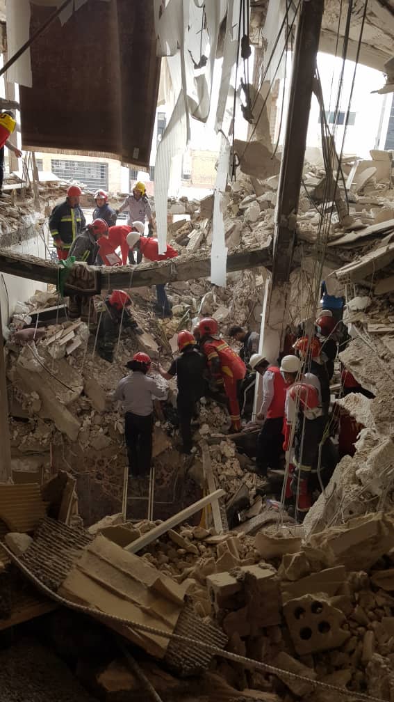 وی عنوان نمود با توجه به حجم آوار تیم آنست (سگهای زنده یاب) جمعیت هلال احمر وارد منطقه شدند.