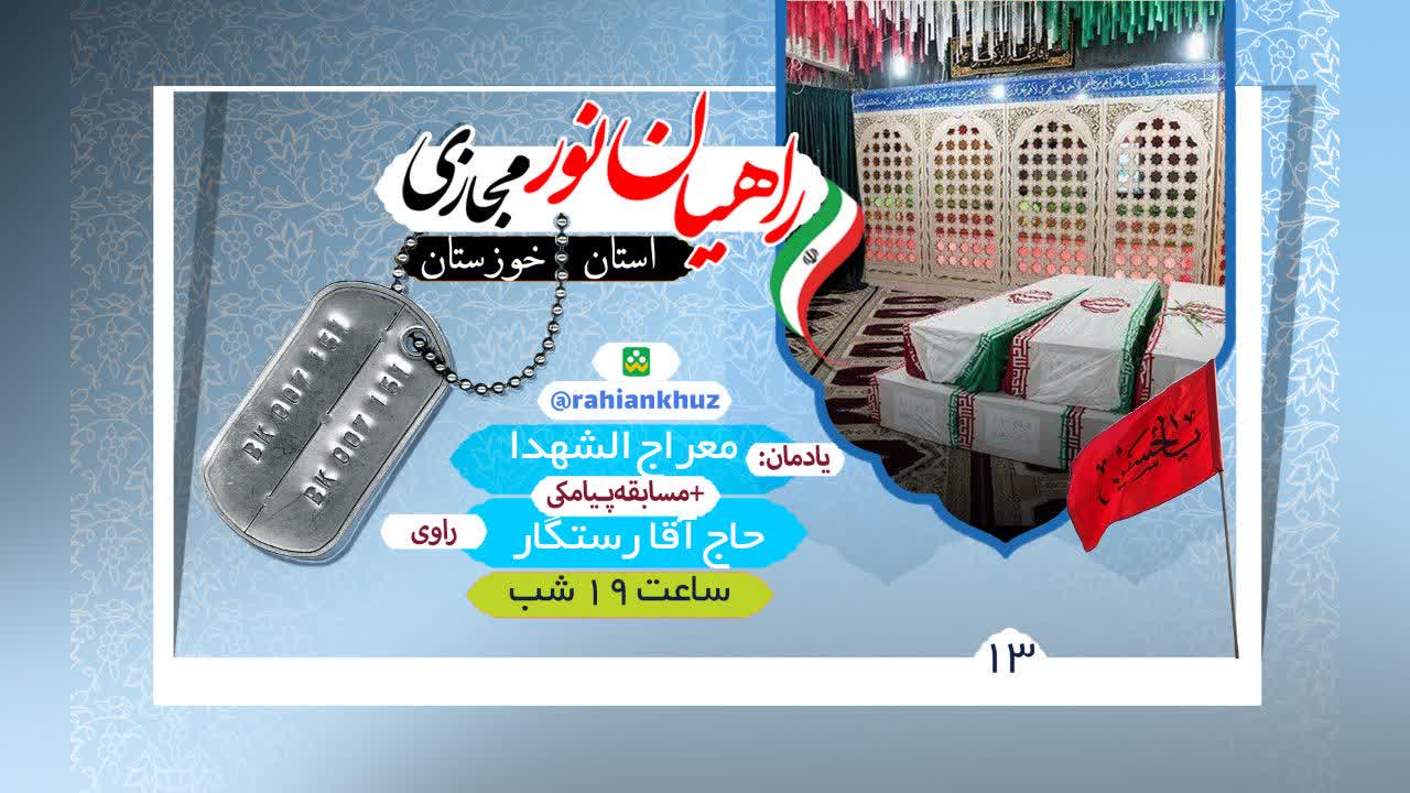 ایشان افزودند:باتوجه به شیوع ویروس کرونا به منظور زنده نگه داشتن یاد و خاطر شهدا اردوی راهیان نور در بستر نرم افزار شاد وزارت آموزش پرورش با همکاری مشترک سازمان اردویی ، راهیان نور و گردشگری سپاه ولی عصر(عج) و معاونت پرورشی و فرهنگی اداره ی کل آموزش و پرورش از روز شنبه ۱۶ اسفند ۹۹ لغایت ۲۲ اسفند ۹۹ هر روز ساعت ۱۰ صبح و ۱۹ برگزار می شود علاقه مندان می توانند با نصب نرم افزار شاد آ.پ و مراجعه به آدرس rahiankhuz @ از بر نامه های متنوع و روایتگری ، راویان برجسته استان و همچنین مسابقات فرهنگی که برگزار میشود استفاده کنند