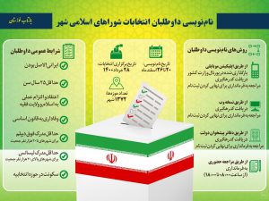 براساس این گزارش داوطلبان شوراهای شهر به چهار روش ثبت نام از طریق اپلیکیشن موبایلی (دانلود برنامه ثبت نام از پورتال وزارت کشور به آدرس entekhabat.moi.ir) و دریافت پیامک مبنی بر ثبت نام قطعی داوطلب از سرشماره ۳۰۰۰۷۷۸۷، ثبت نام از طریق نسخه ویندوز و قابل نصب بر روی رایانه (دانلود برنامه ثبت نام از پورتال وزارت کشور به آدرس entekhabat.moi.ir) و دریافت پیامک مبنی بر ثبت نام قطعی داوطلب از سرشماره ۳۰۰۰۷۷۸۷، ثبت نام از طریق دفاتر پیشخوان دولت و دریافت پیامک مبنی بر ثبت نام قطعی داوطلب از سرشماره ۳۰۰۰۷۷۸۷، و ثبت نام از طریق مراجعه حضوری به فرمانداری شهرستان (از ساعت ۸ تا ۱۸) و دریافت رسید ثبت نام میتوانند نسبت به نام نویسی خود اقدام کنند.