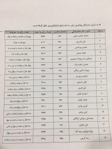 فهرست کامل آراء مأخوذه ۱۰۶ کاندید شورای شهر مسجدسلیمان