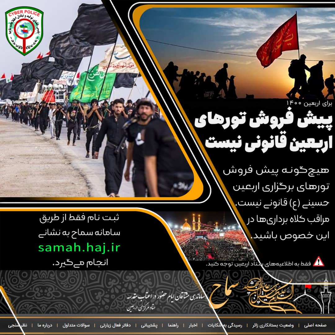 به گزارش بازتاب خوزستان،سرهنگ کاراگاه علی حسینی، رئیس پلیس فتا استان خوزستان گفت: در حال حاضر مرزهای زمینی ایران به عراق در اربعین بسته هستند و فروش تورهای اربعین نیز غیرقانونی است به همین دلیل هموطنان در این زمینه مراقب کلاهبرداران در فضای مجازی باشند.