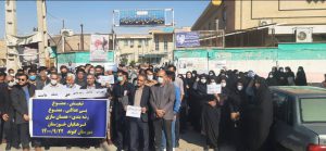 به گزارش بازتاب خوزستان؛ این تجمع که صبح روز دوشنبه بیست و دوم آذر ماه ۱۴۰۰؛ در مقابل اداره آموزش و پرورش شهرستان گتوند برگزار شد، معلمان و فرهنگیان در خصوص عدم طرح رتبه بندی و معیشت و نگاه نادرست به ارتقاء جایگاه معلمان اعتراض کردند، که در همین راستا یازدهم آذرماه -۱۴۰۰ نیز تعدادی از فرهنگیان به این موضوع اعتراض داشتند، و در مقابل اداره آموزش و پرورش شهرستان تجمع کرده بودند.