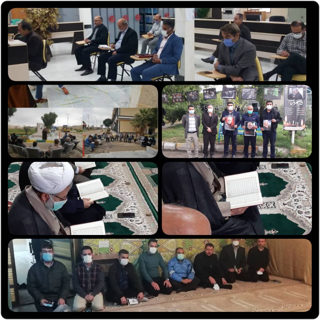 در این مراسمات که با حضور جمعی از پرسنل،ریاست و اعضای هیأت علمی،ضمن قرائت زیارت عاشورا و سخنرانی با اهداء گل بر یادمان شهداء، یاد و خاطره سردار شهید سپهبد حاج قاسم سلیمانی گرامی داشته شد.