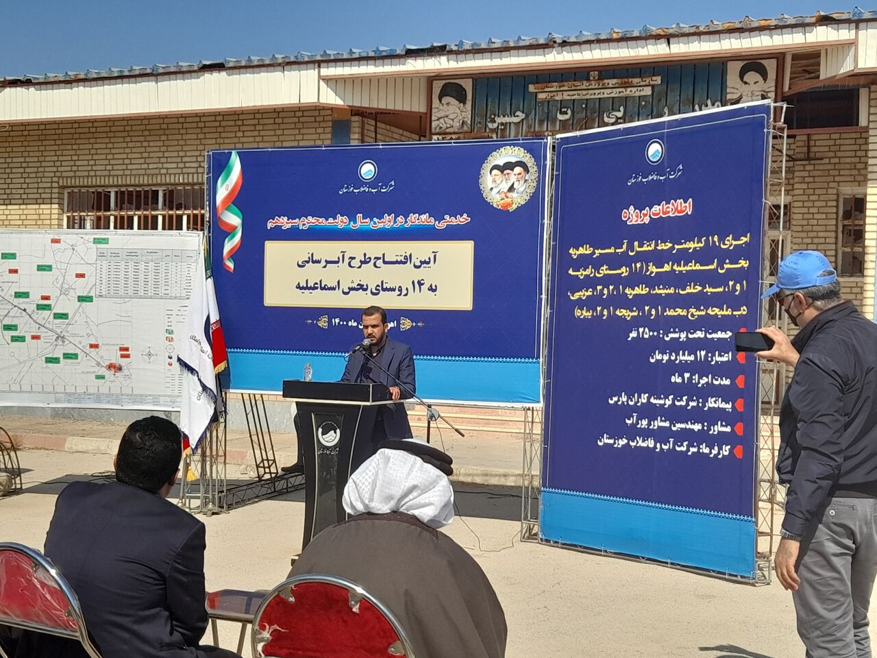 امروز با حضور مسئولان کشوری طرح آبرسانی به ۱۴ روستای بخش اسماعیلیه اهواز بهره برداری شد.