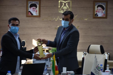دانشجوی فداکار ملی به پاس قدردانی از تلاشهای مدافعان سلامت در سنگر مبارزه با کرونا، تندیس خود را به نیابت از تمامی تلاشگران این عرصه به دکتر سید محمد محمدی، سرپرست دانشگاه علوم پزشکی آبادان تقدیم کرد.