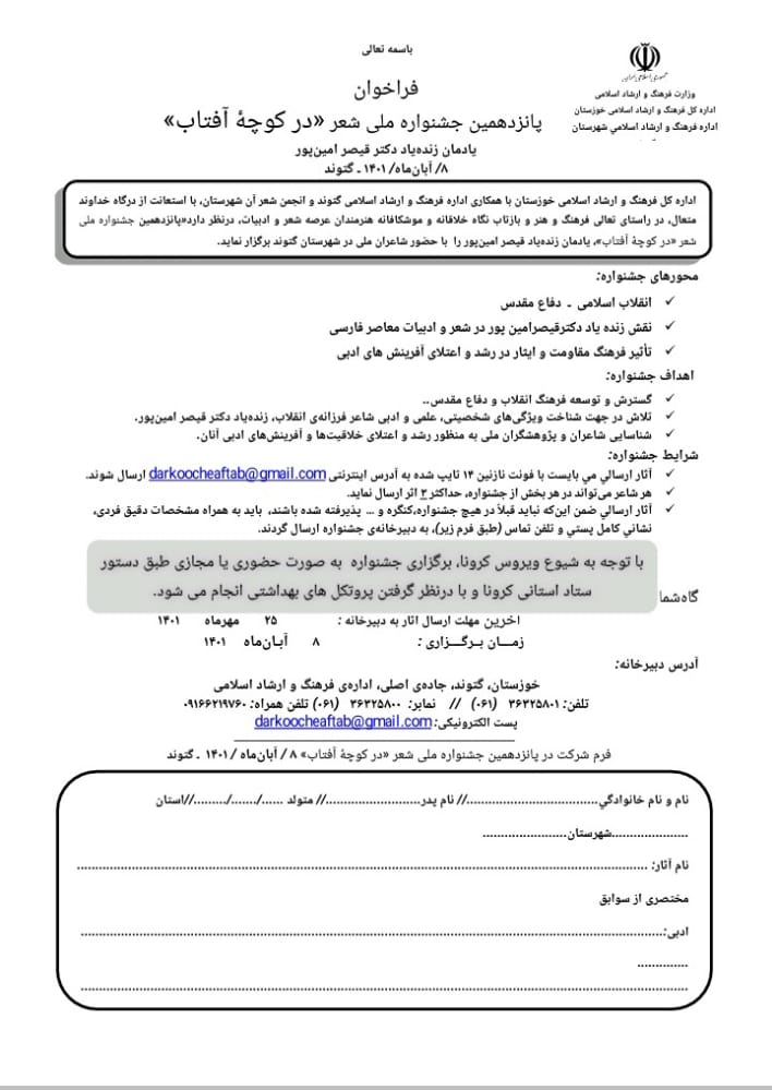 فراخوان جشنواره# قیصر امین پور# خوزستان# گتوند#