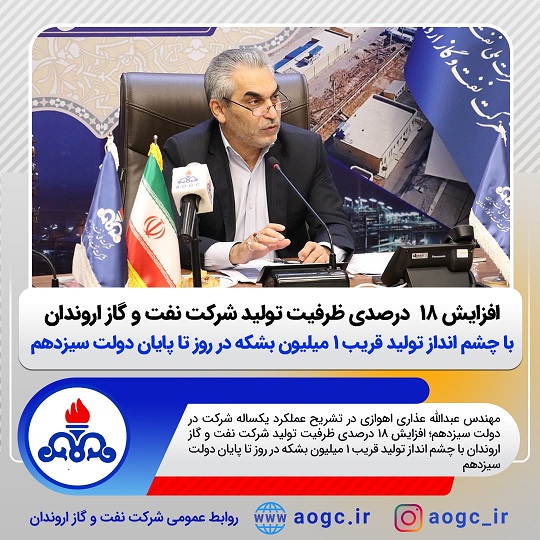 افزایش ۱۸ درصدی ظرفیت تولید شرکت نفت و گاز اروندان با چشم انداز تولید قریب ۱ میلیون بشکه در روز تا پایان دولت سیزدهم