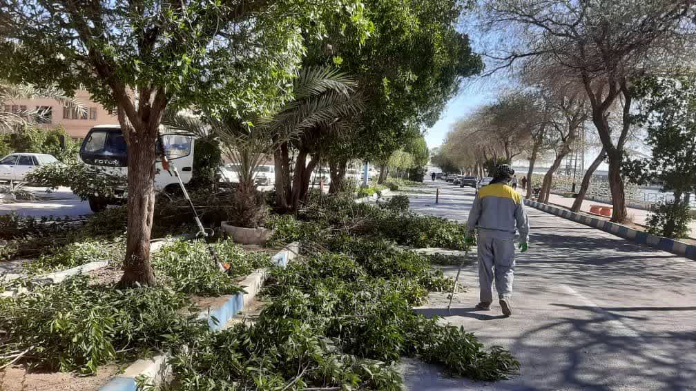 هرس ، فرم دهی و بازپیرایی درختان سطح شهر با هدف جوان سازی و‌ تامین سلامت درختان و بهبود وضعیت سیما و منظرشهری توسط چند اکیپ فعال سازمان فضای سبز شهرداری خرمشهر در حال اجرا می باشد ./