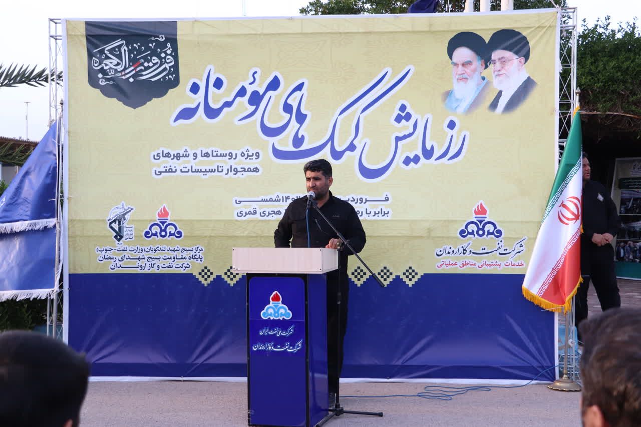 مهندس عذاری اهوازی مدیرعامل شرکت نفت و‌ گاز اروندان در ابتدای این مراسم ضمن خوش آمد گویی به حُضار و گرامی داشتن شب قدر و تسلیت شهادت حضرت علی علیه السلام، با اشاره به مسئولیت ها و وظایف فردی و سازمانی محوله در توجه به مشکلات مردم مَحروم منطقه بیان داشت: در ادامه مجموعه ایی از رزمایشات کمک مومنانه که در سال گذشته انجام پذیرفت، امسال نیز با رصد و شناسایی صورت گرفته از خانواده های کم برخوردار این مناطق،با لطف خداوند سُنت حسنه و نهضت مواسات این شرکت ادامه پیدا می کند، و شرکت نفت و گاز اروندان توجه به محرومیت زدایی از جوامع مناطق نفتی غرب کارون را همواره به عنوان مسئولیت های اجتماعی خود مد نظر دارد.