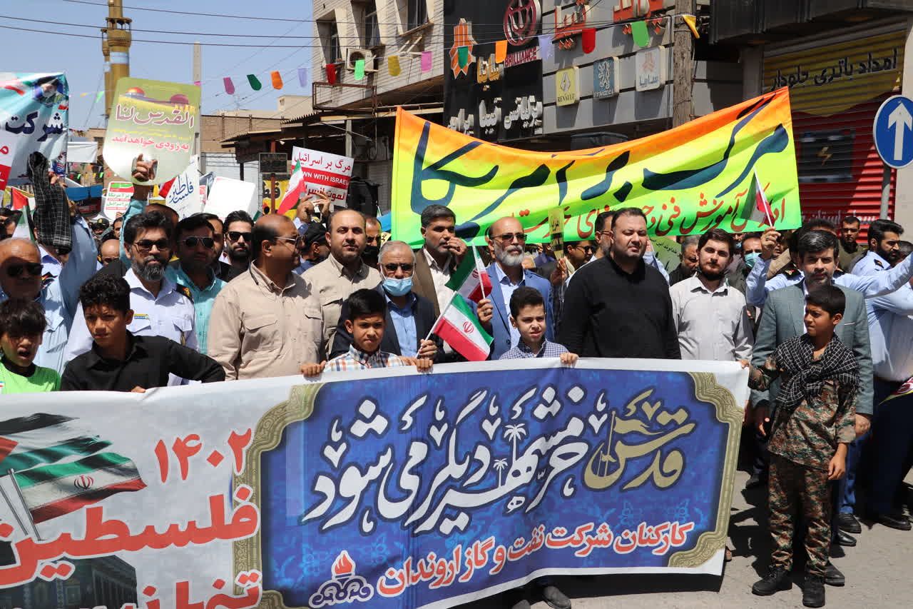 حضور مدیرعامل و کارکنان شرکت نفت و گاز اروندان در راهپیمایی باشکوه روز قدس