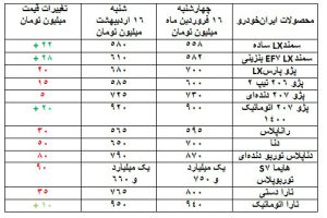 قیمت محصولات این دو شرکت در بازار امروز (۱۶ اردیبهشت)، یکماه پیش (۱۶ فروردین) و تغییرات آن در این دو بازه به شرح زیر است: