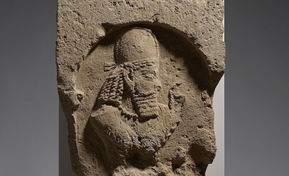 این اثر تاریخی که متعلق به دوره ساسانی است، در سال ۱۹۸۸ میلادی وارد کشور امارات شده و سال ۲۰۰۶ از کشور امارات خارج شده است. زمان توقیف اثر در بریتانیا سال ۲۰۱۶ بوده است. زمان دقیق خروج این سنگنگاره از ایران مشخص نیست، اما با توجه به زمان ورود آن به امارات که مصادف با ۱۳۶۷ شمسی است، به احتمال زیاد این اثر در زمان جنگ تحمیلی به شکل غیرقانونی از کشور خارج شده است.