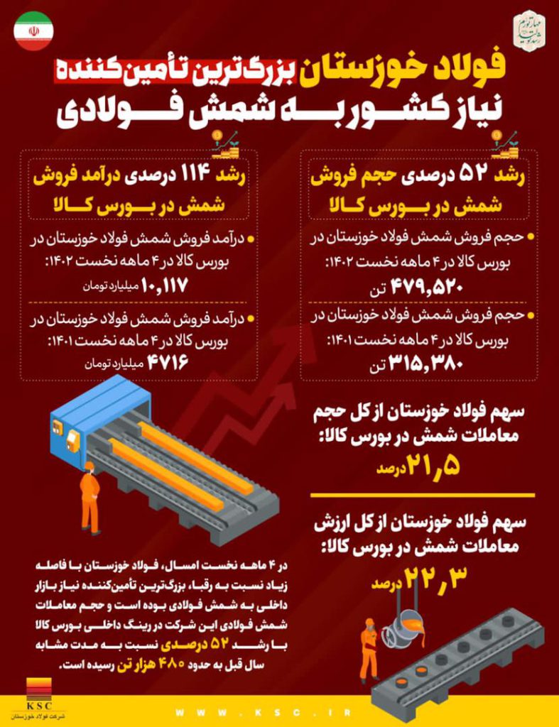 گفتنی است، در این دوره کل ارزش معاملات شمش فولادی در بورس کالا ۴۵ هزار و ۴۳۹ میلیارد تومان بوده که فولاد خوزستان ۲۲.۳ درصدِ ارزش معاملات شمش را به خود اختصاص داده است.