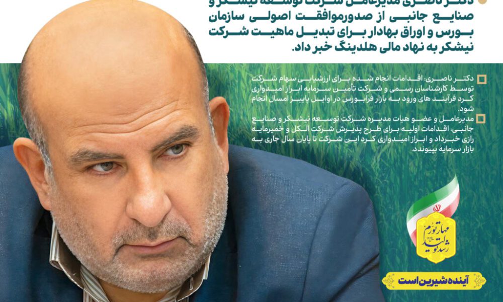 دکتر ناصری از صدورموافقت اصولی سازمان بورس و اوراق بهادار برای تبدیل ماهیت شرکت نیشکر به نهاد مالی هلدینگ خبر داد.