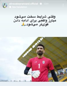 مدت زمان دوری بیرانوند از میادین مشخص نیست و این دروازهبان امشب در یک استوری در اینستاگرام به آسیبدیدگیاش واکنش نشان داد و نوشت: وقتی شرایط سخت میشود، مبارز واقعی برای ادامه دادن قویتر میشود.