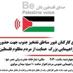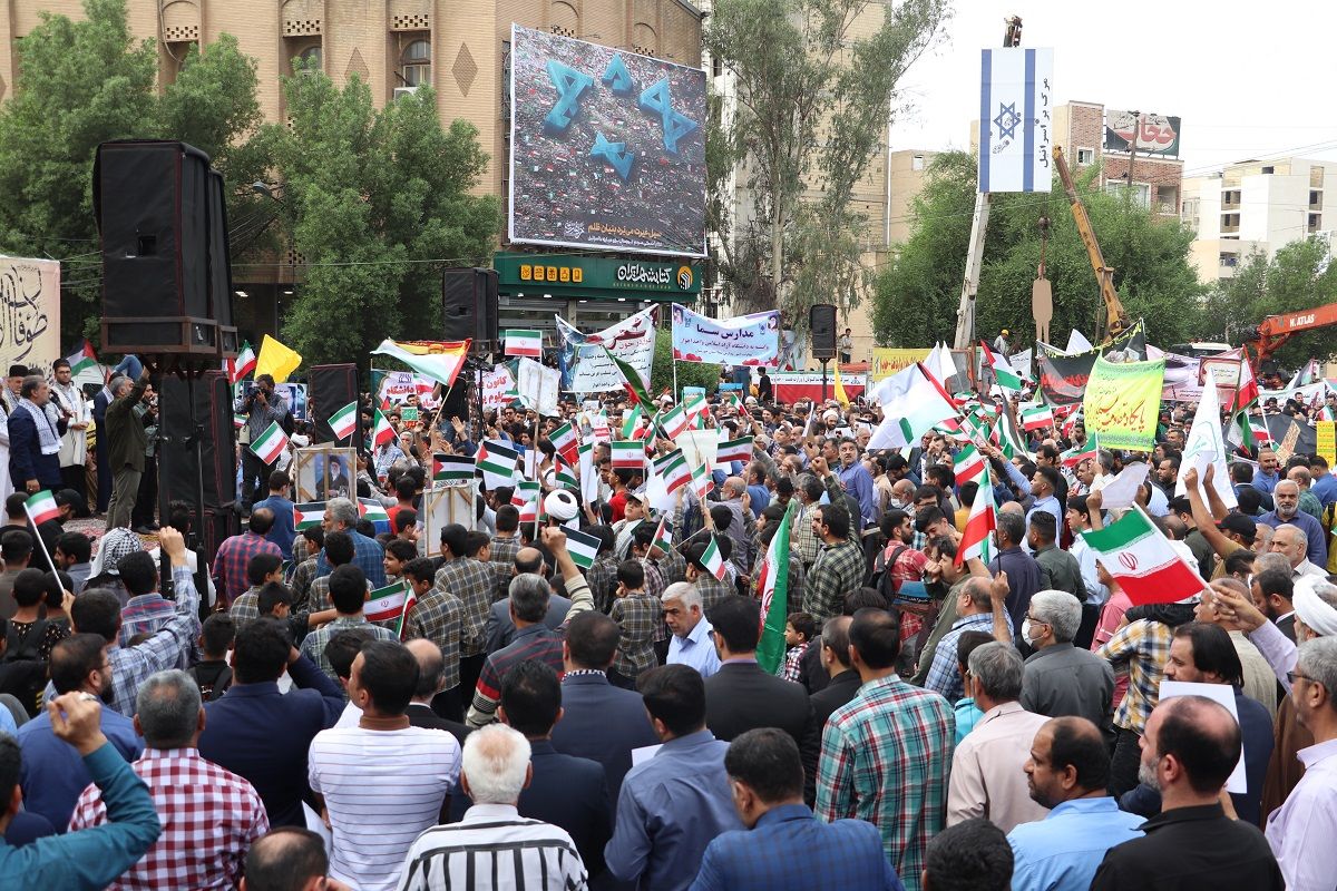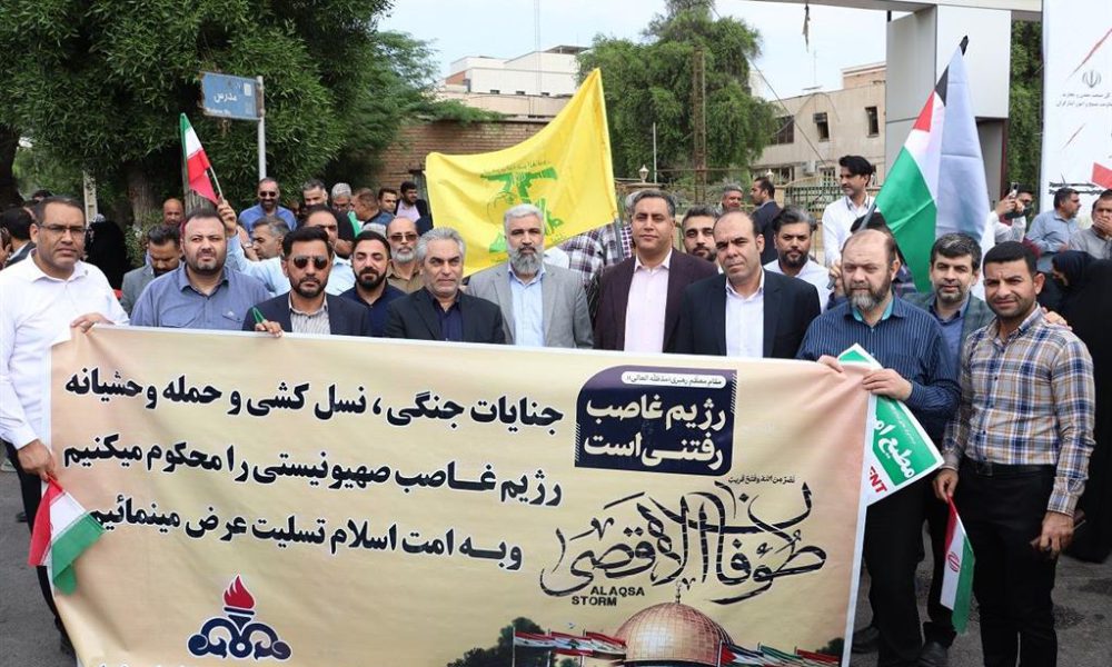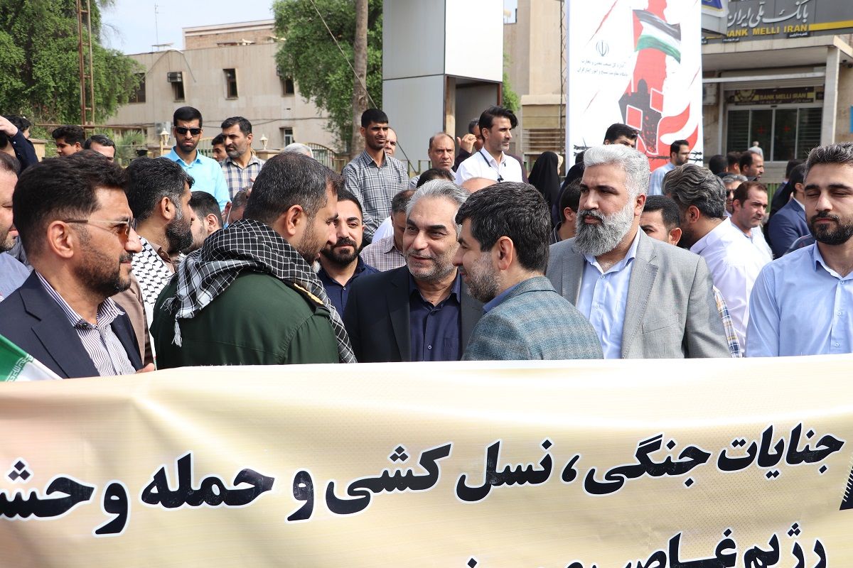به گزارش بازتاب خوزستان به نقل از روابط عمومی شرکت نفت و گاز اروندان ، امروز (چهارشنبه ۳ آبان ۱۴۰۲)  مردم استان خوزستان در حمایت از مردم مظلوم فلسطین و اعلام انزجار نسبت به جنایات و شرارت‌های رژیم غاصب صهیونیستی تجمع کردند.