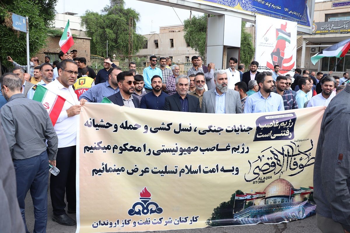 حضور مدیرعامل و کارکنان شرکت نفت و گاز اروندان در اجتماع بزرگ حمایت از مردم غزه در استان خوزستان