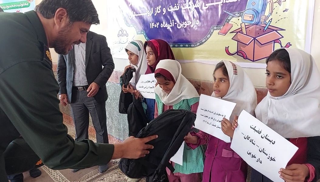 توزیع بسته های نوشت افزار توسط شرکت نفت و گاز اروندان به دانش آموزان شهر دارخوین