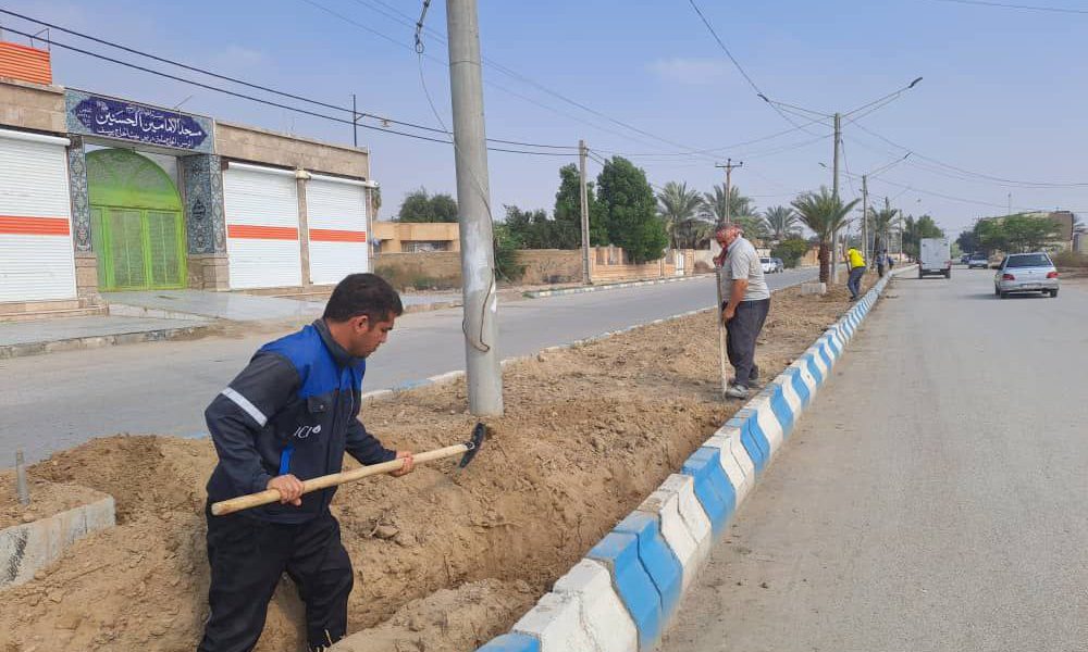 فضای سبز بلوار مهر در خرمشهر جهت احداث شبکه ی آبیاری لوله گذاری شد