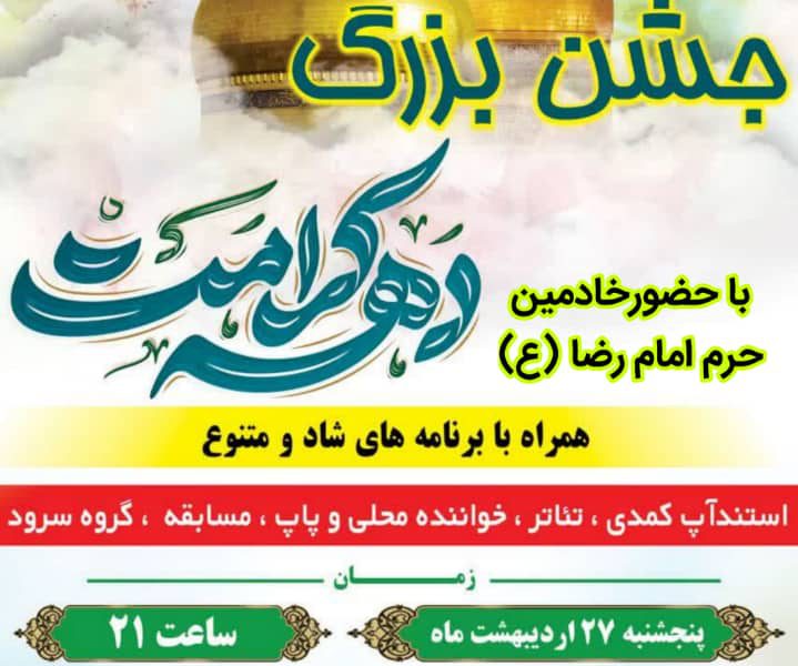 جشن بزرگ دهه کرامت با حضور خادمین حرم امام رضا (ع) در پارک گلستان شهرستان گتوند برگزار می شود.