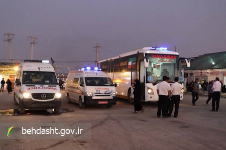 خدماترسانی ۹اتوبوس آمبولانس به زوار اربعین در مرز شلمچه