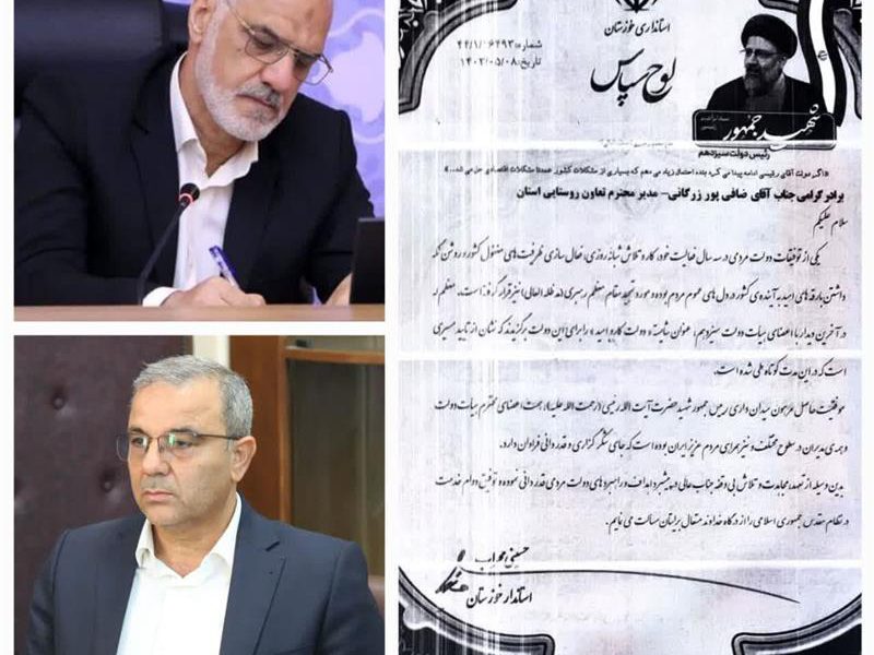 به گزارش بازتاب خوزستان از روابط عمومی مدیریت تعاون روستایی خوزستان، علی اکبر حسینی محراب استاندار خوزستان با ارسال پیامی از مهندس جمیل ضافی پور زرگانی مدیر تعاون روستایی خوزستان تقدیر به عمل آورد.