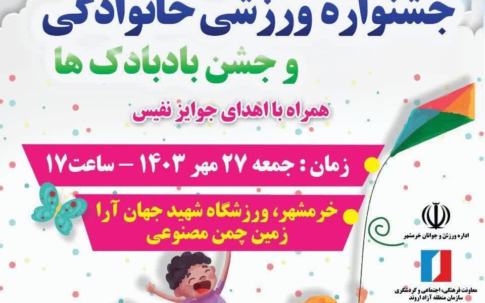 جشنواره ورزشی به همراه جشن بادبادک ها و با اجرای تیم های مختلف ورزشی روز جمعه ۲۷ مهر ماه از ساعت ۱۷ در زمین چمن مصنوعی ورزشگاه شهید جهان آرا به مناسبت هفته تربیت بدنی با مشارکت شهرداری خرمشهر برگزار می شود. شرکت در این جشنواره برای عموم شهروندان آزاد و رایگان است.