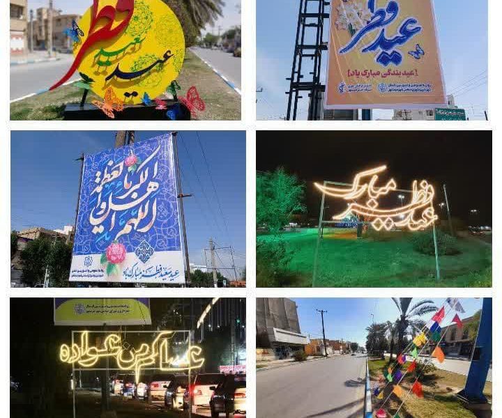 همزمان با عید سعید فطر میادین و معابر خرمشهر به مناسبت این عید فرخنده توسط روابط عمومی و اموربین الملل شهرداری خرمشهر با نصب بنر در بیلبوردهای سطح شهر، نصب پرچم و ریسه های الوان رنگی ، اِلمان های نوری و دیگر اِلمان های تبریک عید فطر ، فضاسازی و آذین بندی شد .