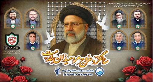 اینجانب،به نمایندگی از مجموعه شرکت آب و فاضلاب خوزستان، شهادت جانسوز و اندوه بار رئیس جمهور محبوب و مردمـی، حضرت آیت الله سید ابراهیم رئیسی، خادم الرضا و خادم الجمهور و همراهان انقلابی ایشان در مسیر خدمت صادقانه و مجاهدانه، را به محضر حضرت بقیّه الله الاعظم ارواحنا فداه، مقام معظم رهبری (مدّظلّه العالی) و عموم ملت شریف و شهیدپرور ایران اسلامی، تسلیت و تعزیت عرض نموده و استمرار انجام خدمت صادقانه و الگو برداری از راه پررهرو شهیدان را از خداوند منان مسئلت می نمایم.
