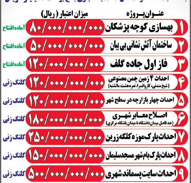 آغاز و بهره‌برداری از پروژه‌های عمرانی شهرداری با ۱۹۶۰ میلیارد ریال اعتبار در هفته دولت