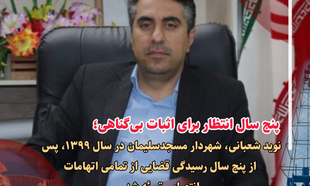 نوید شعبانی، شهردار مسجدسلیمان در سال ۱۳۹۹، پس از پنج سال رسیدگی قضایی از تمامی اتهامات انتصابی تبرئه شد