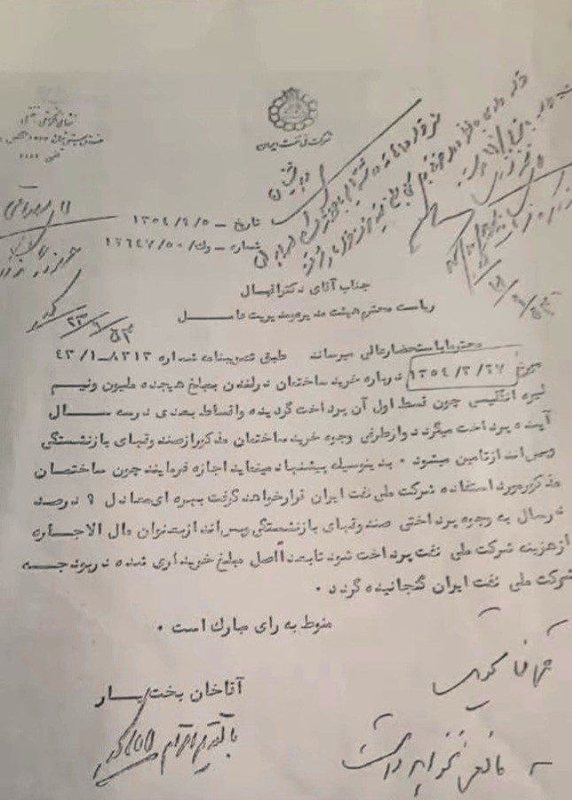 در سندی که پیشتر و در همین زمینه از میان اسناد نفت ایران دیدم و منتشر شد مهندس آقاخان بختیار، مدیر بازرگانی وقت شرکت ملی نفت ایران در سال هزار و سیصد و پنجاه و چهار طی نامه ای به دکتر اقبال، مدیرعامل شرکت ملی نفت ضمن توضیح مبلغ و شرایط خرید اقساطی ساختمان در لندن و پرداخت وجوه از محل صندوق های بازنشستگی نفت، خواستار مجوز بهره نه درصدی به صندوق های بازنشستگی نفت شده بود که هامش نویسی این نامه اداری که امروز سندی مهم است نشان می دهد این موضوع انجام شده اما طبق همین سند مشخص است مقرر شده در سال بعد از آن بودجه خرید ساختمان مذکور در بودجه شرکت ملی نفت ایران دیده و عملا بدهی به صندوق های بازنشستگی نفت عودت داده شود.