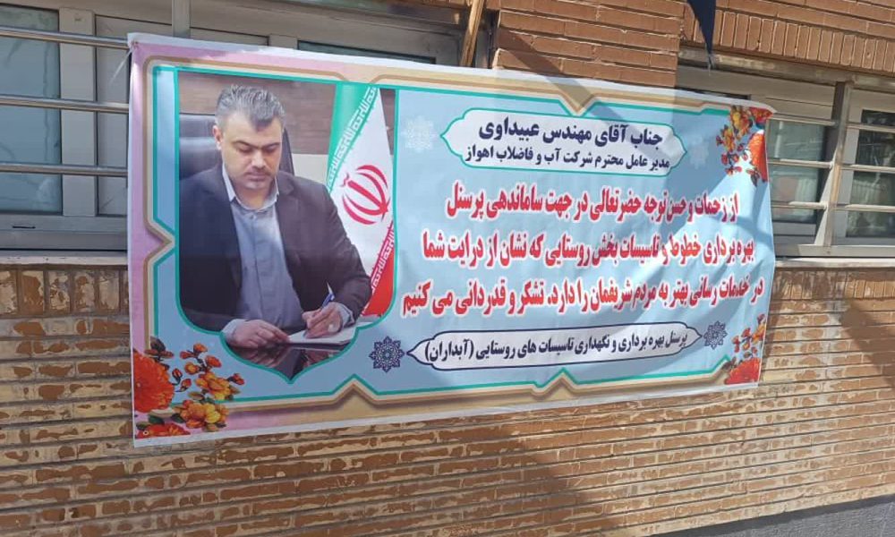 به گزارش بازتاب خوزستان از روابط عمومی شرکت آب و فاضلاب اهواز، پرسنل بهرهبرداری و نگهداری تأسیسات روستایی (آبداران) شرکت آب و فاضلاب اهواز با نصب بنری در محل شرکت، از تلاشها و اقدامات مهندس عبیداوی، مدیرعامل شرکت در زمینه ساماندهی وضعیت نیروهای روستایی قدردانی کردند.