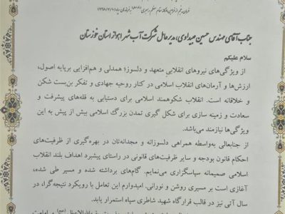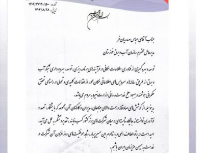 در پی دستاوردهای سازمان آب و برق خوزستان در توسعه و بهکارگیری سامانههای اطلاعات مکانی، معاون سرمایه انسانی، تحقیقات و فناوری اطلاعات وزیر نیرو در پیامی رسمی از عملکرد و رویکرد مدیر عامل سازمان آب و برق خوزستان تقدیر کرد.