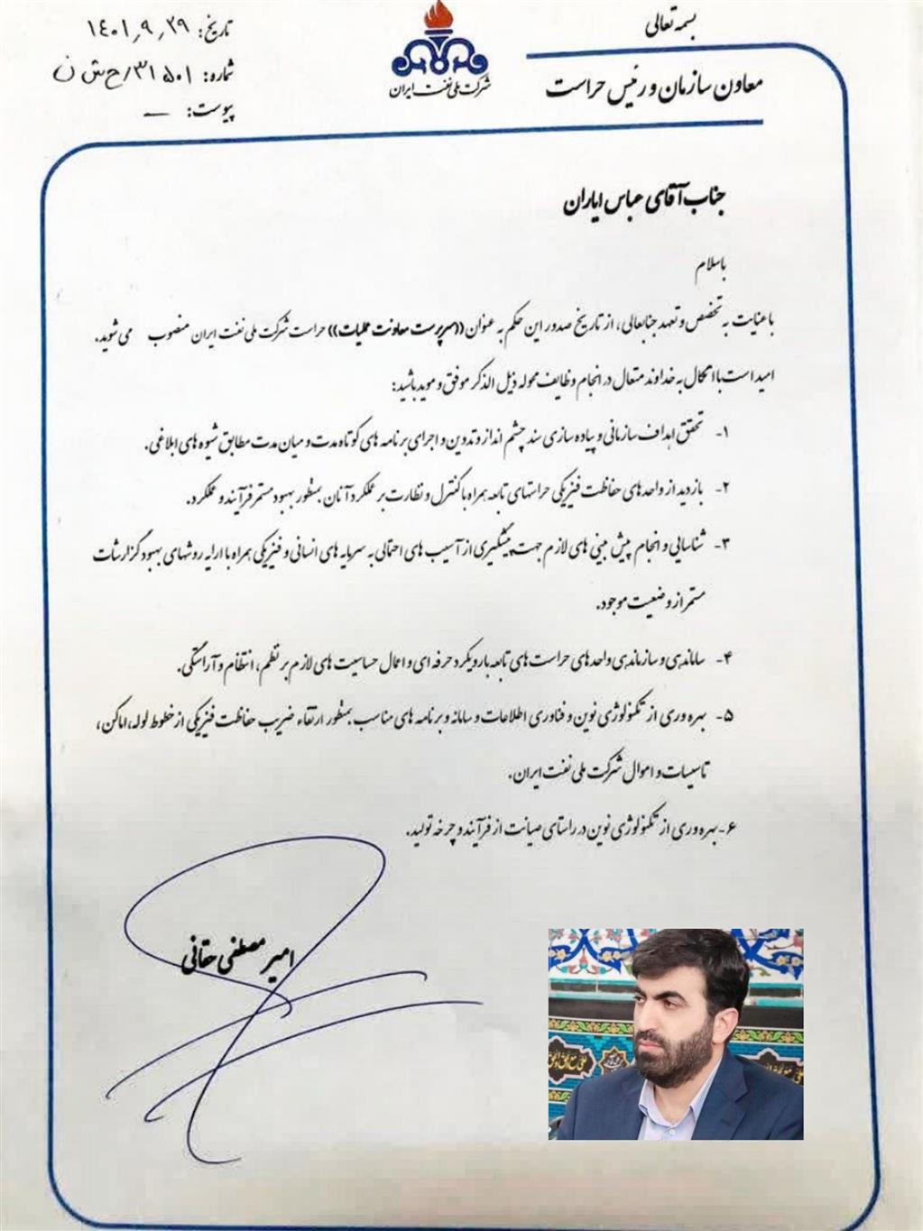 به گزارش بازتاب خوزستان به نقل از روابط عمومی شرکت نفت و گاز اروندان، با صدور حکمی توسط امیر مصطفی حقانی رییس حراست شرکت ملی نفت ایران ، عباس ایاران به معاون حراست این شرکت منصوب شد. از مهمترین سوابق ایاران می توان به جانشینی حوزه مقاومت بسیج شهید تندگویان وزارت نفت جنوب و مشاور جوان […]