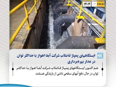 🔹 هم اکنون ایستگاههای پمپاژ فاضلاب شرکت آب و فاضلاب اهواز با حداکثر توان در حال دفع آبهای سطحی ناشی از بارندگی هستند.